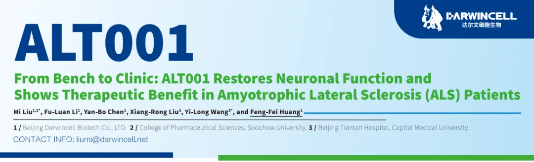 In a randomized, double-blind, placebo-controlled clinical trial conducted at Beijing Tiantan Hospital, most patients receiving ALT001 demonstrated positive therapeutic responses. After 120 days of treatment, patients exhibited clinically meaningful improvements in ALSFRS-R scores with a clear dose-response relationship. In addition, cerebrospinal fluid levels of neurofilament light chain (NfL) decreased in a dose-dependent manner, suggesting a potential neuroprotective effect. Some patients also showed signs of improved handwriting and motor function.